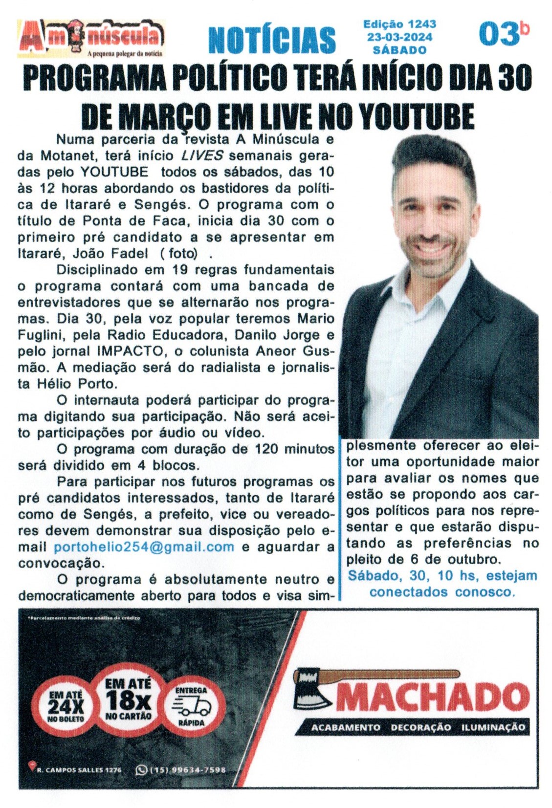 ENTREVISTADO DA SEMANA O PRÉ CANDIDATO A PREFEITO DE ITARARÉ, JOÃO FADEL.